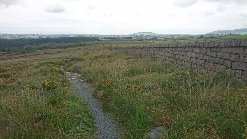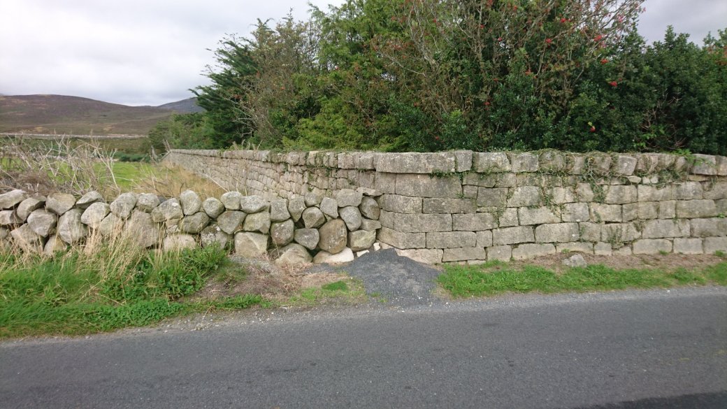The portion of Wall I wanted to check that day was the more ornate-looking section constructed from cut stone stretching southwards from this junction all the way to Head Road. I also wanted to visit a summit that day, so I followed the Wall in the opposite direction up nearby Slievenaglogh. This section of the Wall is constructed from uncut boulders and doesn’t look all that different from the other dry-stone walls in the area.