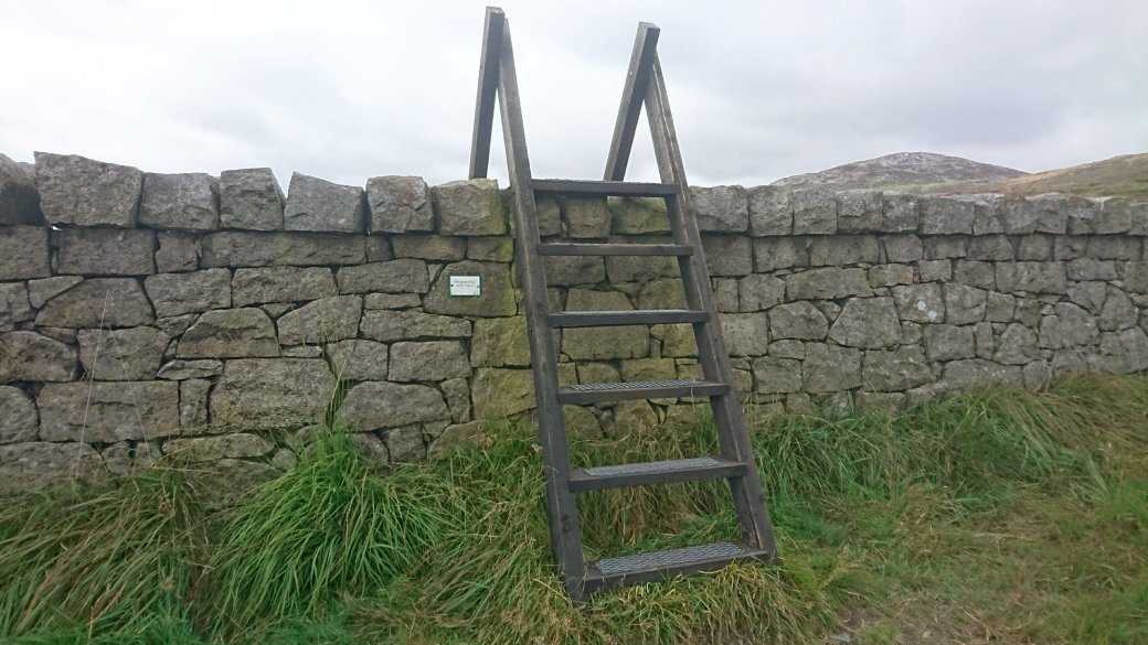Then, all of a sudden, a welcome piece of path. One of the constructed trails in the Silent Valley Mountain Park. I followed this alongside the Wall for a couple of hundred metres to a stile. At this point, a small sign on the Wall read “MOURNE WALL – BUILT 1904 – 1922”.
