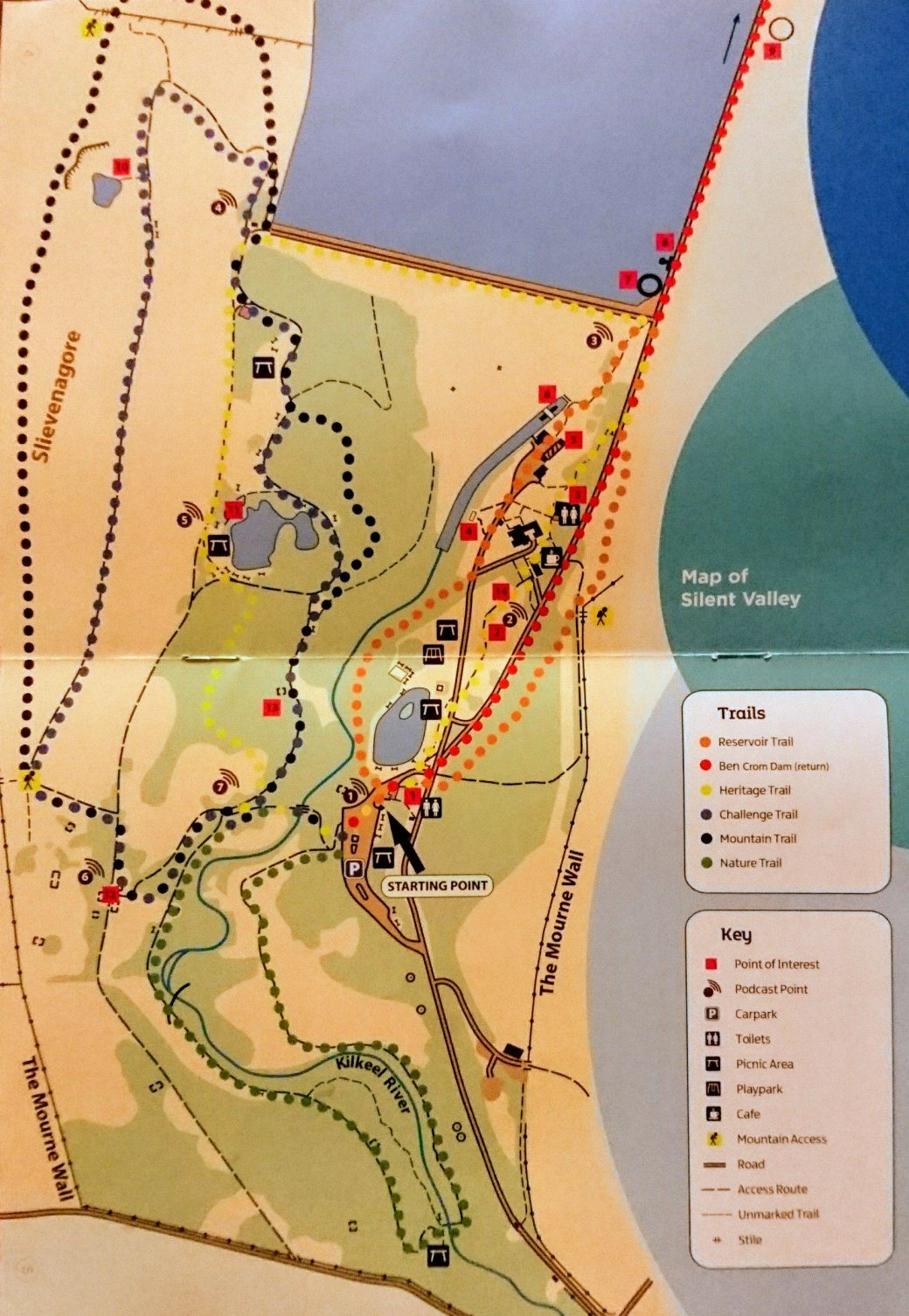 When I arrived at Silent Valley Mountain Park, I was given an information booklet. Inside it, I was delighted to see a map of the park with the local section of Mourne Wall clearly marked.